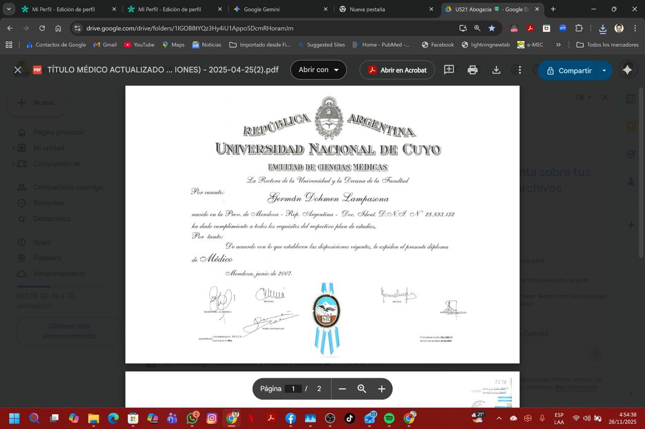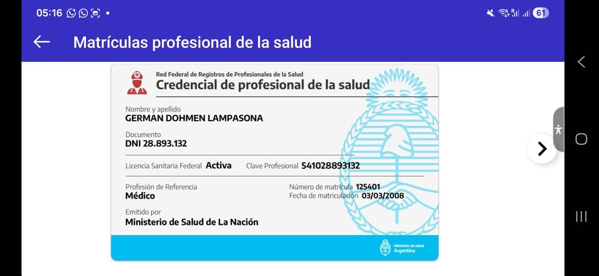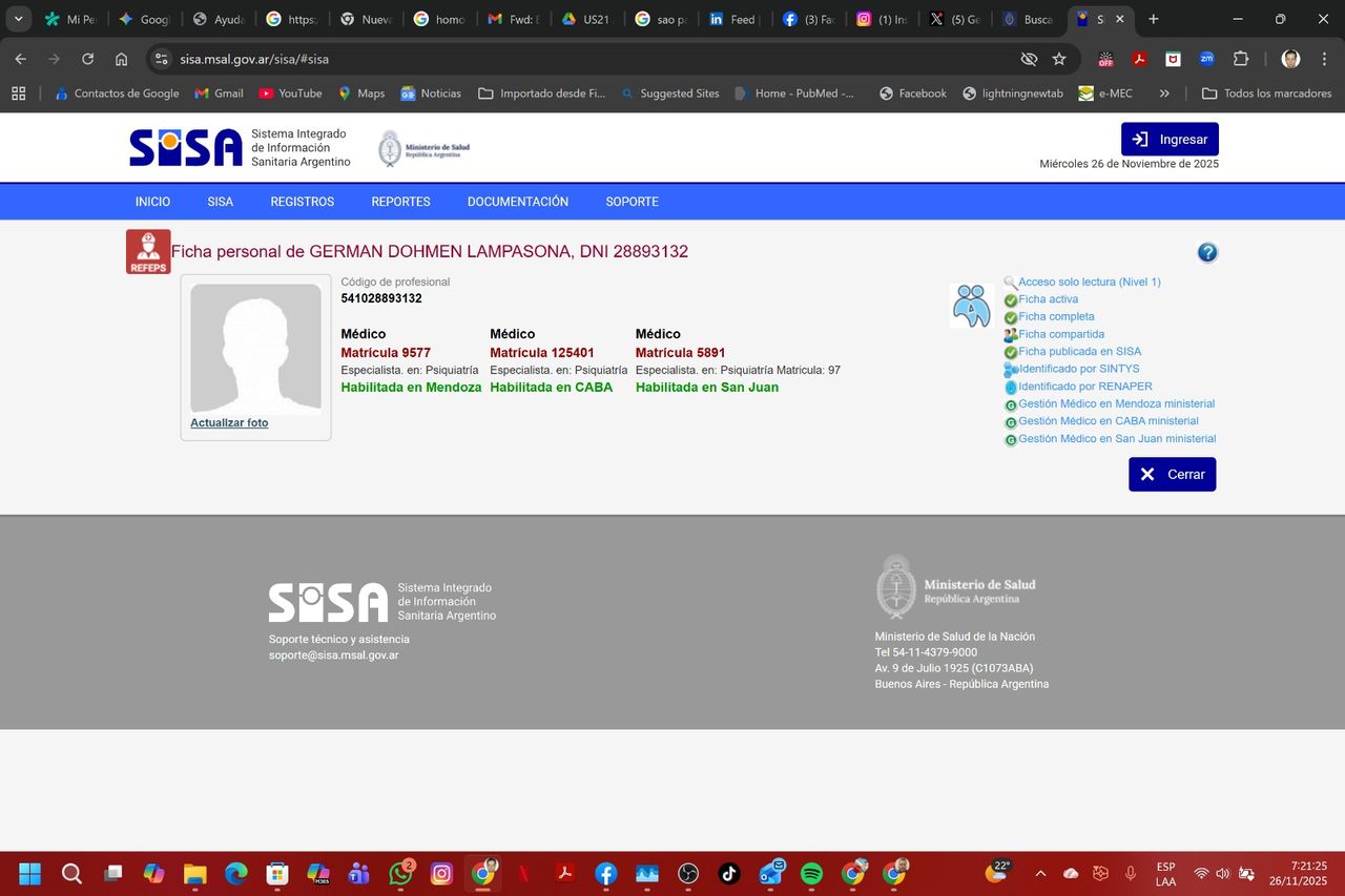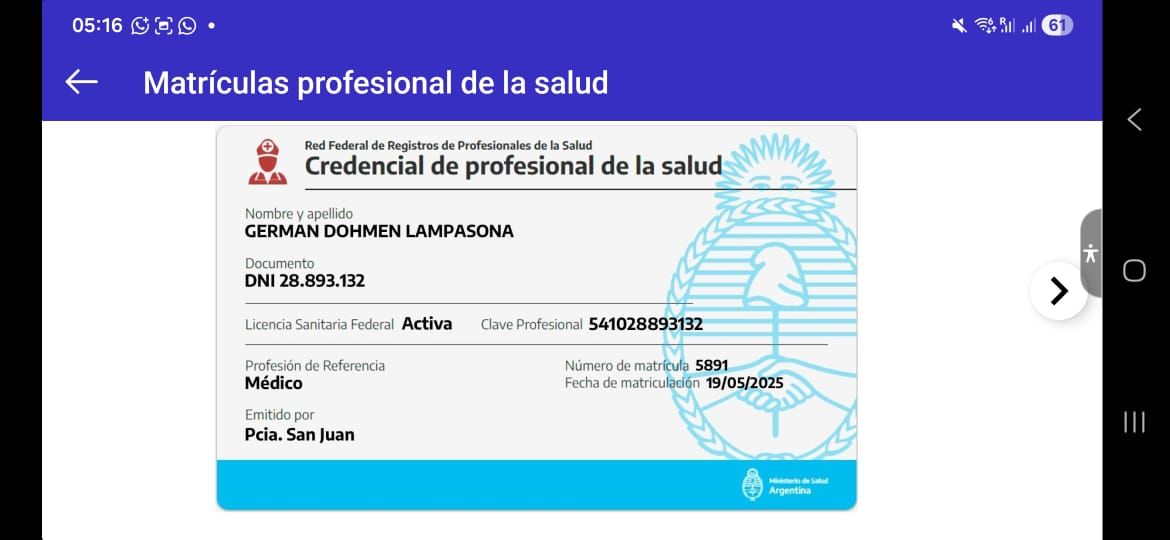 Gracias a mis credenciales profesionales activas en múltiples jurisdicciones (Ministerio de Salud de la Nación - CABA, Mendoza, San Juan y Neuquén), ofrezco telemedicina segura y validada para pacientes en cualquier provincia de argentina. mi consultorio virtual es un espacio estructurado, confidencial y cómodo.
