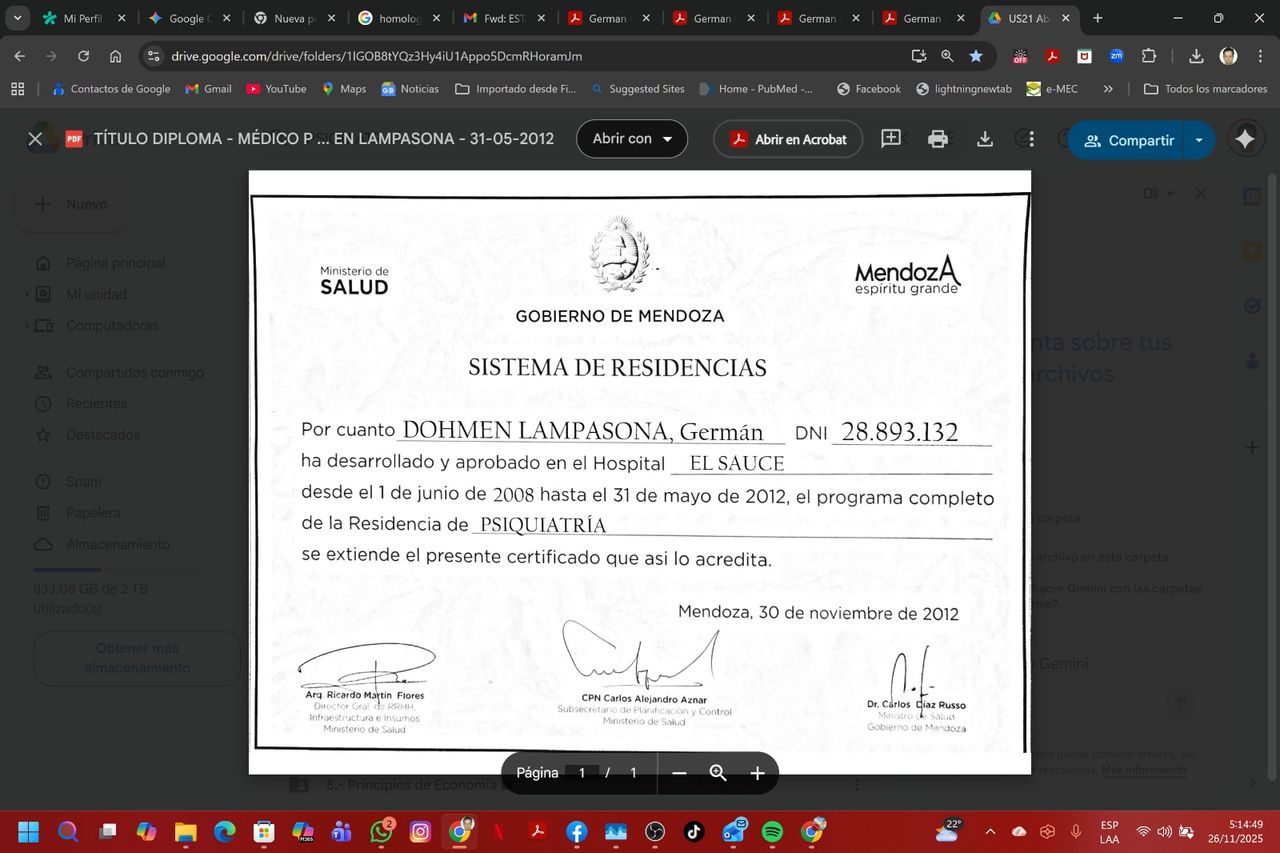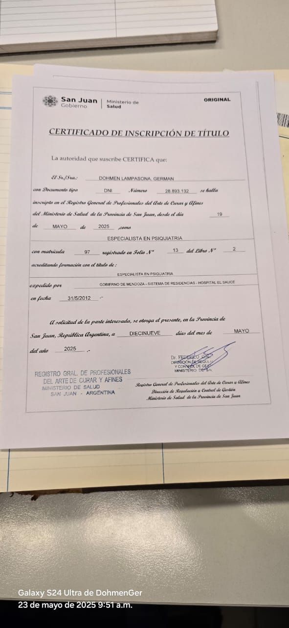 Soy médico egresado de la Universidad Nacional de Cuyo. Posteriormente, completé la residencia de psiquiatría (Clínica Interdisciplinaria de Salud Mental) en el Hospital El Sauce de Mendoza, un centro clave para el manejo de crisis agudas.